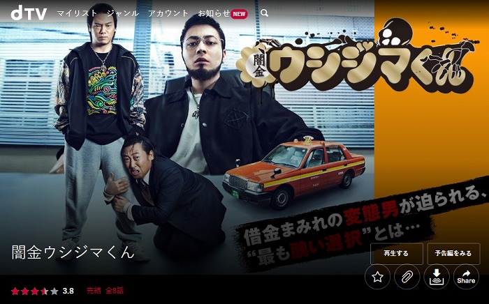 dTVは見逃し配信こそ行っていませんが、TBS系のドラマや映画のスピンオフを制作し独自配信しています。こちら「闇金ウシジマくん タクシー編」は、dTV限定のオリジナル作品でここでしか見られません(DVDは出ているのでレンタルは可能です)。