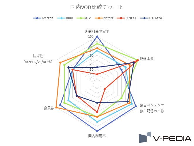 そして次に、VODごとの特徴を理解していきます。