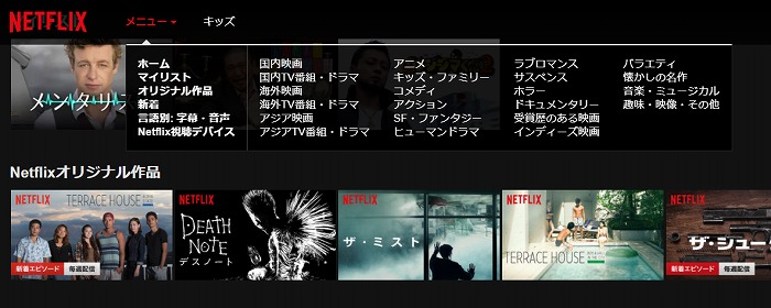 Netflix内の動画が探しやすい・カテゴリーが詳細